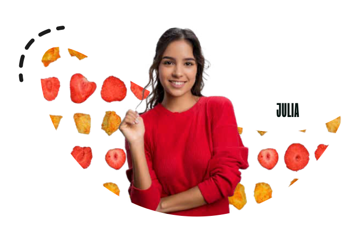 Siempre disponibles en casa, nuestros snacks liofilizados son una opción deliciosa y saludable. Bajos en calorías y sin conservadores, garantizan un bocado seguro y sabroso para toda la familia en cualquier momento.